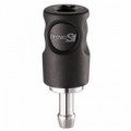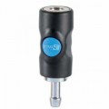 Bezpečnostní rychlospojka s kruhovým připojením. Vyrobené z kompozitního materiálu bez silikonu. Velmi lehké, odolné vůči otěru, nárazům, rozdrcení a vibracím. Profil ISO 6150 B. O průchod 6 mm, výstup hadice 8 mm, průtok 833 l/min, maximální tlak 16 bar.Rychlospojky na vzduch