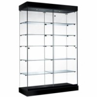 Produktové vitríny se dvěma oddělenými částmi. Vybavená 2x pěti policemi pro vystavení zboží. Integrované LED osvětlení v každém oddílu. Otevírání pomocí posuvných dveří. Vyrobené z tvrzeného skla.Produktové vitríny ASF, 192 x 46 x 125 cm, 2 oddíly