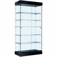 Prosklená vitrína se stabilní základnou. Vybavená 5 policemi pro vystavení zboží. Integrované dvojité LED osvětlení. Otevírání pomocí posuvných dveří. Vyrobená z tvrzeného skla.Produktové vitríny ASF, 192 x 46 x 90 cm