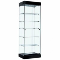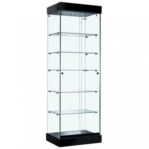Prosklená vitrína se stabilní základnou. Vybavená 5 policemi pro vystavení zboží. Integrované LED osvětlení. Otevírání pomocí posuvných dveří. Vyrobená z tvrzeného skla.Produktové vitríny Manutan Expert, 192 x 46 x 64 cm