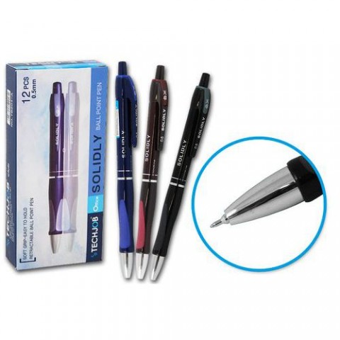 Oblíbené kuličkové pero s vyměnitelnou náplní. Elegantní plastové neprůhledné tělo s ergonomickým pogumovaným úchopem pro příjemnější držení. Stiskací mechanismus, zvláště jemný kovový hrot s extra tenkou stopou písma. Modrá náplň. Propiska obsahuje vyměnitelnou náplň, kterou máme v nabídce TOP. Mix barev.Propiska SOLIDLY 0,5mm