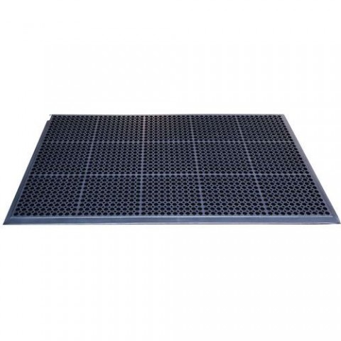 Rohož proti únavě se používá k obráběcím centrům, soustruhům, frézám do autoservisů apod. Otvory spolu s drenáží odvádí tekutiny z povrchu. Hmotnost rohože zaručuje její dobrou stabilitu. Náběhová hrana brání zakopnutí a umožňuje nájezd vozíků.Protiúnavová průmyslová rohož s děrovaným povrchem, 157 x 98 cm