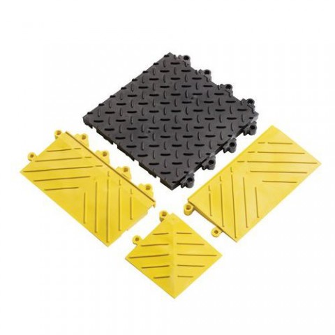 Protiúnavové průmyslové rohože pro suché prostředí se skládají z dlaždic, jejichž spojením lze přizpůsobit velikost rohože rozměrům prostoru. Rohože jsou vhodné i do těžkých provozů, kde je kladen důraz na vysokou odolnost a nosnost. Navíc lze dokoupit zkosené náběhové hrany a rohy.Protiúnavové průmyslové rohože s diamantovým povrchem, 30 x 30 cm