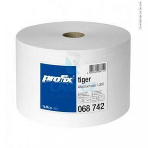 Průmyslové utěrky jsou vyrobené z dvouvrstvé celulózy a latexu, jsou vysoce savé a pružné. Vhodné pro průmysl, zdravotnictví, potravinářství apod.Průmyslové textilní utěrky Profix Tiger, 1-vrstvé, 119 m, 2 ks