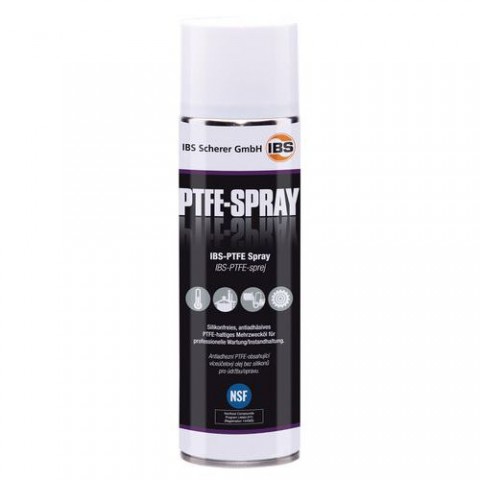 Teflonový mazací sprej vhodný k suchému mazání řetězů, řetězových kol, otevřených ozubených kol, ozubených a závitových tyčí, ocelových lan a lanovodů. Možnost použití také v potravinářském průmyslu díky NSF-H1 potravinářskému povolení. Mazivo pro trvalé mazání s antistatickým a antiadhezním účinkem (odpuzuje prach, nečistotu a vodu). Snižuje opotřebení, zabraňuje tvorbu koroze, zanechává dlouhotrvající povlak, neobsahuje silikony a je voděodolný. Zlepšení vlastnosti kluznosti, napomáhá delší životnosti dílů a strojů. Tepelná odolnost od -40 °C do +220 °C.PTFE mazací sprej IBS, 500 ml