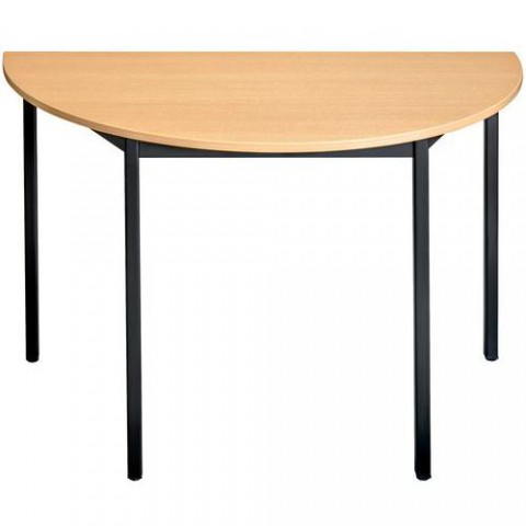 Půlkruhový modulární stůl lze poskládat do požadovaného rozložení. Vhodné použití do jednacích místností. barva desky: buk rozměry desky d x h: 120 x 60 cm výška stolu: 74 cm provedení: půlkruhové materiál desky: laminovaná dřevotříska, tl. 19 mm materiál podnoží: ocel barva podnoží: černá dodáváno v demontovaném stavuPůlkruhový jednací stůl Steven, 120 x 74 cm