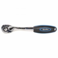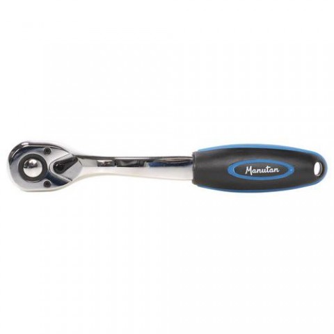 Ráčna s ergonomickou rukojetí pro pohodlnou manipulaci. Vstup pro nástrčný klíč 1/2''. 72 zubů pro otáčení. Systém zpětného chodu pomocí páčky.Ráčna Manutan Expert 1/2''