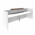Moderní recepce Luxo v bílé barvě. Desky mají antireflexní povrch odolný proti poškrábání a 2 mm ABS hranu. Vybaveno rektifikačními nožkami pro eliminaci podlahových nerovností. barva: bílá/ořech rozměry pracovní desky d x h: 286 x 88 cm výška pracovní desky: 113 cm provedení: rovné materiál: laminovaná dřevotříska 2 mm ABS hrana, desky tloušťky 25 mm, dodáváno v demontovaném stavuRecepce Luxo rovná, 286 cm