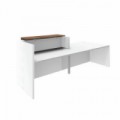 Moderní recepce Luxo v bílé barvě. Desky mají antireflexní povrch odolný proti poškrábání a 2 mm ABS hranu. Vybaveno rektifikačními nožkami pro eliminaci podlahových nerovností. barva: bílá/ořech rozměry pracovní desky d x h: 126 x 88 cm výška pracovní desky: 113 cm provedení: rovné materiál: laminovaná dřevotříska 2 mm ABS hrana, desky tloušťky 25 mm, dodáváno v demontovaném stavuRecepce Luxo rovná, 126 cm