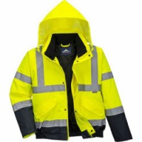 Nepromokavý bomber s reflexními prvky v celozatepleném provedení. Čtyři kapsy pro uložení věcí, skrytá kapsa na mobilní telefon. Kapuce v límci, dvoucestný zip, lepené švy. Tkanina odráží 98 % UV záření (50+ UPF), vodní sloupec 15 000 mm. Vnější tkanina 100% polyester, PU zátěr 190 g, podšívka 100% polyester 60 g, výplň 100% polyester 170 g. Splňuje normy EN 343:2019 Třída 3:1 X WP 15,000 mm; EN 342 0.336 (M2.K/W), 2, X; EN ISO 20471 Třída 3.Reflexní nepromokavá bunda bomber Hi-Vis, žlutá/modrá