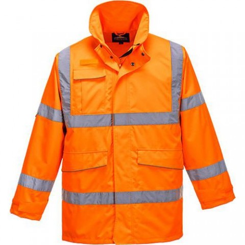 Pracovní prodyšná parka s reflexním označením pro vysokou viditelnost. Osm kapes pro ukládání věcí, dvoucestný zip, nastavitelné manžety na suchý zip. Interaktivní zip umožňuje parku nosit s fleecovou bundou, která se prodává zvlášť. Vnější tkanina 100% polyester 200 g, podšívka 100% polyesterová síťovina 60 g. Splňuje normy EN ISO 20471 Třída 3; RIS-3279-TOM ISSUE 1; EN 343:2019 Třída 4:3 R WP 11,000 mm MVP 50,000g/m2/24hrs.Reflexní nepromokavá bunda Parka Extreme, oranžová