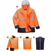 Reflexní bunda s extra vysokou viditelností díky stříbrné reflektivní kapuci. Celkem 8 kapes pro uložení věcí, lepené švy, odnímatelná vnitřní oboustranná vesta. Dvoucestný zip, žebrované manžety. Tkanina odráží 98 % UV záření (50+ UPF), vodní sloupec 15 000 mm. Vnější tkanina 100% polyester, PU zátěr 190 g, podšívka 100% polyester 60g. Splňuje normy RIS-3279-TOM ISSUE 1; EN 343 Třída 3:1 WP 15,000 mm; EN ISO 20471 Třída 3.Reflexní nepromokavá bunda Silver Traffic 4v1 Hi-Vis, oranžová/modrá