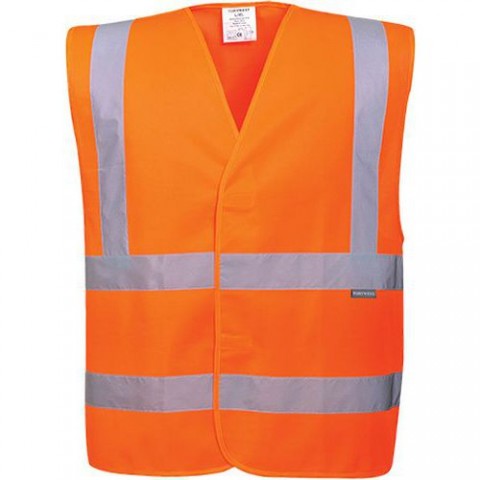 Vesta s vysokou viditelností a reflexními doplňky vhodná pro železniční profese. Zapínání na suchý zip. Tkanina 100% polyester, Warp Knit 125 g/m2. Splňuje normy EN ISO 20471 Třída 2, RIS 3279-TOM Vydání 1, ANSI/ISEA 107 TYP R Třída 2 a S 4602.1 Třída D/N.Reflexní vesta Two Band Brace Hi-Vis, oranžová