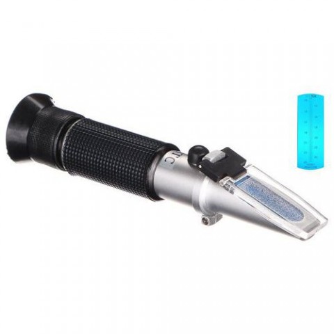 Kompaktní velikost přístroje Přístroj nepotřebuje žádnou baterii a nevyžaduje montáž Tělo přístroje je z lehké a odolné speciální hliníkové slitiny Část přístroje je opatřena měkkým, pryžovým krytem pro komfortní držení Nevyžaduje prakticky žádnou údržbu Vysoká provozní spolehlivost a dlouhá životnost. Velká, dobře čitelná stupnice Malá odchylka a vysoká přesnost měření Měření refraktometrem na med je velmi jednoduché, stačí kápnout kapku medu na zešikmený optický hranol přístroje, přiklopit krytku hranolu (med se rozprostře), podívat se proti světlu do okuláru přístroje, případně ho zaostřit a na stupnici. V zorném poli lze ihned odečíst hodnotu obsahu vody v medu podle rozhraní mezi osvětlenou a neosvětlenou částí. Při kalibraci postupujte následujícím způsobem: Očistěte modrý povrch hranolu refraktometru nejlépe destilovanou vodu a optickým hadříkem. Otevřete víčko na refraktometru a po celou dobu ho mějte otevřené. Pipetou kápněte 1 kapku kalibračního roztoku na modrý hranol refrakRefraktometr pro měření obsahu vody v medu AT 25 SIXTOL