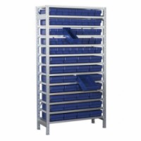 Kovový regál s třinácti policemi a vysouvacími boxy je určen k přehlednému uskladnění širokého sortimentu drobného materiálu v dílnách, skladech, garážích, obchodech atd. K boxům je možno dokoupit dělící příčky. Povrchová úprava pozinkováním.Regál se 68 zásuvnými boxy, hloubka 50 cm