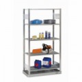 Bezšroubové policové regály Manutan Expert Rapid 3 vhodné do kanceláří, dílen a skladů. Police z kvalitní dřevovláknité desky s vysokou hustotou (HDF) lze stavět v rastru 40 mm. Ochranné plastové patky. Konstrukce z ocelového plechu tl. 1 - 1,5 mm. Povrchová úprava pozinkováním nebo práškovým lakem.Bezšroubové kovové regály Rapid 3 - Manutan Expert