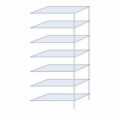 Regál s pěti policemi je vhodný nejen do skladů a garáží. Police jsou výškově přestavitelné v rastru 138 mm. Bílý policový regál je rychle smontovatelný bez spojovacího materiálu. Police se jednoduchým způsobem nasadí na sloupky. Možnost spojování do polí a řad vedle sebe i za sebou.Kovový regál, základní, 188 x 100 x 40 cm, 325 kg, 5 polic, bílý
