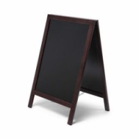 Reklamní áčko s křídovou tabulí z kvalitního borovicového dřeva a černého vysokotlakého laminátu. Samotná popisovatelná tabule je vhodná do restaurací či bister. Díky ochrannému laku a nátěru stabilními UV barvami je vhodná i pro venkovní použití. Snadná manipulace díky lehké konstrukci a pantům vyrobeným z galvanizované oceli.Reklamní křídová tabule A, tmavě hnědá