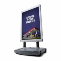 Reklamní oboustranné tabule jsou vhodné pro prezentaci ve venkovním prostředí. Plastové základny vybavené kolečky jsou plnitelné vodou či pískem. Tabule mají zaklapávací profily na svislých stranách a UV stabilní antireflexní krycí fólii pro větší odolnost plakátů. Reklamní poutače mají vyztužené pružiny z vysoce kvalitní oceli a nárazuvzdorné středové panely. Stojany disponují bezpečnostními plastovými rohy ze vstřikovaného plastu.Reklamní stojany Windtalker Excel