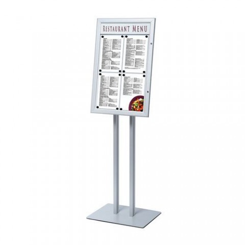 Uzamykatelný menu board v elegantním provedení. Volně stojící na vlastní kovové základně, možnost umístění do vnitřních nebo venkovních krytých prostorů. Připevnění až čtyř menu formátu A4 pomocí magnetek. Menu vitrína je opatřená horní lištou, kterou je možné potisknout nebo polepit vlastním logem nebo textem, standardně je dodávána bez potisku. Přední panel je vyroben z Lexan polykarbonátu tloušťky 0,75 mm.Reklamní vitrína Formalis
