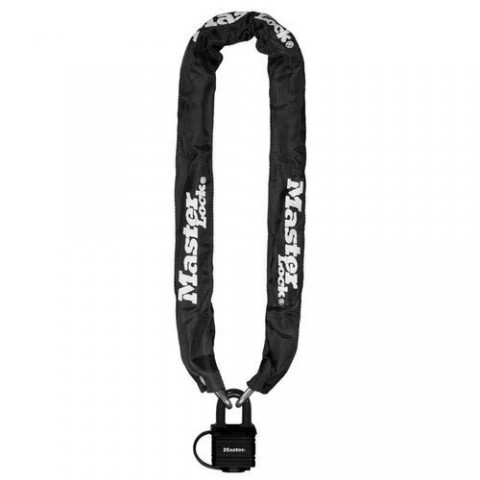 Zpevněný ocelový řetěz s ocelovým visacím zámkem. Délka 900 mm, obsahuje ocelové spojky o průměru 6 mm, které jsou odolné proti přeřezání. Nylonový kryt řetězu zabraňuje poškrábání. Visací ocelový zámek o průměru 40 mm je odolný proti povětrnostním vlivům. Plastový kryt na visacím zámku zabraňuje poškrábání. Třmen s průměrem 9 mm je vyroben z oceli pro odolnost proti přeřezání. Obsahuje 4-kolíkový válec zabraňující vyhmatání a dvojitou západku odolnou proti vypáčení. Bezpečnostní třída Master Lock™ 7.Řetězové zámky na kolo Master Lock 6mm
