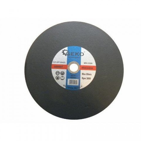 Kvalitní řezný kotouč na kov GEKO s rozměry 400 x 4 x 32 mm vhodný pro řezání prvků z konstrukční oceli, plechu, trubek a profilů. Kotouč je vhodný do stolních pil a řezaček a práce s ním je rychlá a snadná. Extrémně houževnatá brusná zrna oxidu hlinitého jsou pojena syntetickou pryskyřicí a vyztužena skelnými vlákny, které prodlužují životnost a odolnost kotouče. Max. otáčky: 3800 ot./min.Řezný kotouč na ocel, 400x4x32mm GEKO