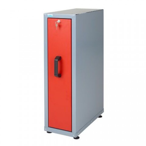 Výsuvná skříňka je určena pro použití jako rohový díl. Uzamykatelná skříňka ukrývá dvě police. Dobrou stabilitu i na mírně nerovné podlaze zaručují výškově nastavitelné šrouby. rozměry v x š x h: 80 x 23 x 47 cm materiál: ocelový plech, tl. 1 mm nosnost: 160 kg počet z??suvek: 1 ks barva: stříbrná barva zásuvek: červená RAL 3002 hmotnost: 15 kg možnost uzamčení, povrchová úprava práškovým lakem, dodáváno v demontovaném stavu (spojovací materiál součástí balení)Rohový díl Monti se zásuvkou, 80 x 23 x 47 cm