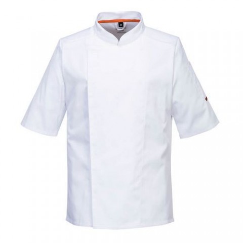 Rondon pro kuchaře z elastické tkaniny se síťovanými provzdušňovacími panely MeshAir Pro C746 nabízí ideální řešení, když je v kuchyni horko. Ideální řešení pro práci v kuchyni. Výrazné lemování, dvojité zapínání a kapsa na tužku. Odolná směsová tkanina pro vysoký výkon a maximální pohodlí uživatele Extrémně voděodolná povrchová úprava tkaniny Texpel™ Splash Eco bez PFAS, voda se na povrchu tkaniny shlukuje do kapek a stéká. Provzdušněná síťovina MeshAir™ v podpaží pro zvýšení proudění vzduchu Slim fit pro výjimečné pohodlí Skrytá přední část pro snadný přístup Kapsa na rukávu Poutko pro bezpečné uložení 1 kapsa pro bezpečné uložení věcí Lze prát v pračce při 60° CRondon s krátkým rukávem Stretch Mesh Air Pro, bílá
