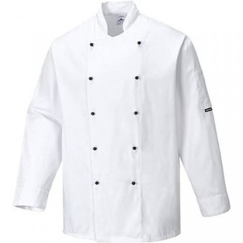 Profesionální pohodlný a nepřehlédnutelný rondon je vyroben z kvalitního směsového materiálu. Drží barvu a tvar i při častém praní. Unisex design oboustranná přední část a větrací otvory dělají z tohoto rondonu absolutního vítěze co se týče provedení a účelovosti. Kapsa na rukávu 1 kapsa Tkanina Pre-Shrunk Unisex vzhled Odolná tkanina Límec do stojáčku Oboustranná přední část Pět řad knoflíků Manžetové otvoryRondon Somerset Chefs, bílá