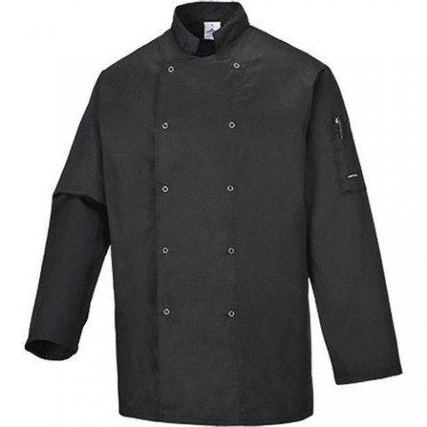 Určeno pro profesionályrondon Suffolk je ideální pro moderní kuchyně. Volný pohyb a dobrý pocit po celý den Přední kruhový druk Kapsa na rukávu 1 kapsa Tkanina Pre-Shrunk Unisex vzhled Odolná tkaninaRondon Suffolk Chefs, černá