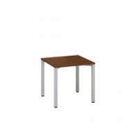 Kancelářské stoly v moderním designu. Deska stolu z laminované dřevotřísky tl. 25 mm a ABS hranami 2 mm. Čtyřnohé podnoží s ocelovou konstrukcí do kříže ošetřené práškovou barvou, jehož bočnice jsou spojeny hliníkovými profily, podpírají desku stolu a přináší tuhost stolu. Dezén desky z divoké hrušky, třešně, buku, ořechu nebo bílé barvy. Dodáváno v demontovaném stavu.Rovné kancelářské stoly Alfa 200, 80 x 80 x 74,2 cm, rovné provedení