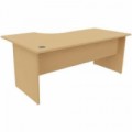 Psací stoly s deskami z melaminových panelů o tloušťce 25 mm. Dostupné v pravém či levém provedení. Panelové základny jsou vybavené aretačními šrouby. Antireflexní úprava a ošetření proti poškrábání, s antibakteriálními vlastnostmi. Součástí desky stolu je 80mm výřez pro vedení kabelů.Kancelářské stoly Manutan Expert, 72 x 160 - 180 x 110 cm, pravé/levé provedení, buk
