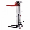 Ruční stohovač určený k jednoduchému zakládání malých palet nebo krabic. Zdvih pomocí nožní hydraulické páky, spouštění pootočením ventilu. Vozík je vyroben z oceli, pohyb zajišťují kvalitní polyuretanová kola s valivými ložisky. Vozík je vybaven odnímatelnou plošinou na vidlice. provozní teplota: -10 až +40 °CRuční vysokozdvižný vozík, do 400 kg, výška zdvihu 1 500 mm