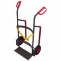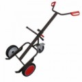 Vozík na sudy s otočným opěrným kolem, které zajišťuje větší bezpečnost a lepší manipulaci. Stavitelná pojistná tyč je uzpůsobena pro různé výšky sudů. Povrchová úprava práškovým lakem v červené barvě RAL 3000.Vozík na sudy, s opěrným kolem, do 300 kg