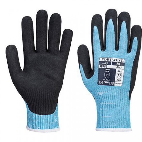 Optimalizovaný inovativní design. Maximální odolnost proti řezu podle EN388:2016. Více než 4000 gramů řezné odolnosti dosahující ANSI Cut A7. Máčení je dvojitě písčitý nitril pro vynikající trvanlivost a přilnavost za mokra i za sucha. Bezešvý úplet 13 pro větší pohodlí uživatele. CE certifikace Maloobchodní taška Bezešvá vložka úplet 13 Dvakrát máčený pískový povrch Vynikající odolnost a přilnavost za mokra i za sucha ANSI prořez úroveň A7 Dvojité máčení pro dlouhou životnost Maximální odolnost proti prořezu podle EN388:2016 Odolnost proti prořezu úroveň FRukavice Claymore AHR Cut, černá/modrá