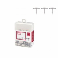 Nýtované rýsováčky v transparentní krabičce. Slouží k rychlému přichycení papíru na korek, dřevo, karton a podobně. Box obsahuje 100 kusů rýsováčků.Rýsováčky DELI 100/box, 10 BAL