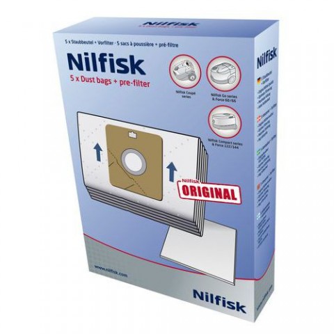 Příslušenství pro vysavače Nilfisk One a Coupé. Sada 5 ks sáčků a 1 pre-filtr.Sáčky do vysavače Nilfisk One/Coupé, 5 ks