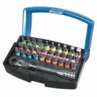 Bity jsou barevně odlišeny a tím je usnadněno hledání. Mikro ráčna na bity s přepínáním L/P chodu. Dodáváno v praktickém plastovém pouzdru s poutkem na opasek. 1x mikro ráčna na bity 1/4 (E6,3) Bit 1/4 E6,3 PH - PH1, PH2, PH3, PH4 (křízový PHILLIPS) Bit 1/4 E6,3 SW - 2, 2.5, 3, 4, 5, 6mm (šestihran imbus) Bit 1/4 E6,3 TT - TT10, TT15, TT20, TT25, TT30, TT40 (šesticíp TORX s OTVOREM)Sada bitů 1/4" s ráčnou 31dílů, NAREX 443000918