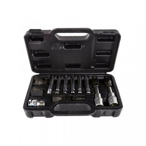 Sada třinácti bitů typů hex a hvězdy o rozměru 1“ pro široké použití na evropských vozidlech. Vhodné pro vozidla: Audi, BMW, Fiat, Ford, Mercedes, Opel, Porsche, Renault, Peugeot, Seat, Skoda, Volvo, VW. Klíče umožňují uvolnění upínacího šroubu na řemenici (vhodným bitem) a udržení kotouče s spojky ve stejnou dobu.Sada bitů hex a hvězdy 1/2” pro alternátor, 13ks GEKO
