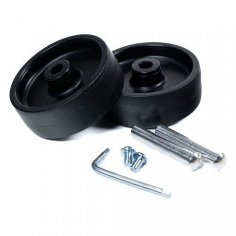 Kolečka pro držák velkých pytlů se spojovacími prvky. Kolečka jsou vyrobena z plastu s osou z pozinkované oceli (tloušťka 100 mm).Sada koleček pro držák objemných pytlů 400 l – Vepabins