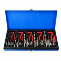 Materiál: rychlořezná nerezová ocel HSS4341. 5x šroubová spirála 5x kohout 1x klíč 5x HSS4341 110x spriálová vložka M5x0.8x6.7mm M6x1.0x8.0mm M8x1.25x10.8mm M10x1.5x13.5mm M12x1.75x16.3mmSada na opravu závitů M5-M12, 131ks GEKO