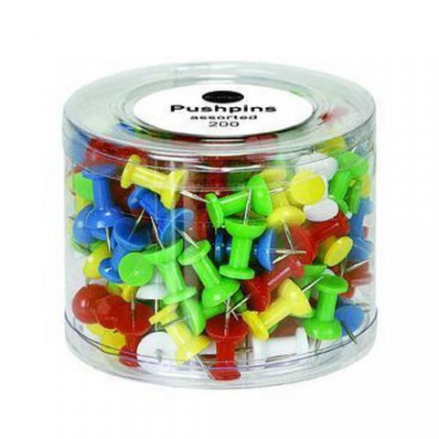 Sada 200 ks různobarevných připínáčků.Sada špendlíků, barevné