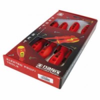 Sedmidílná sada šroubováků. Plastová rukojeť 1000 V. Plochý: 2,5 x 75; 4,0 x 100; 5,5 x 125. Křížový PHILLIPS: Ph1 x 80; Ph2 x 100. Křížový POZIDRIV: Pz1 x 80; Pz2 x 100.Sada šroubováků 7dílná PL/PZ/PH PROFI 1000V, NAREX 855400