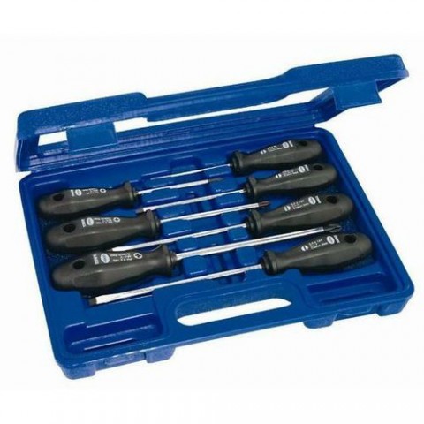 Kvalitní sada šroubováků v přenosném plastovém kufříku. Plastová rukojeť. Obsah: Plochý: 3,0 x 75; 4,0 x 100; 5,5 x 125; 6,5 x 150. Křížový POZIDIRV: Pz1 x 80; Pz2 x 100; Pz3 x 150.Sada šroubováků PL/PZ PROFI, NAREX 862402