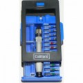 Čtyřicet jedna dílů bitů vyrobených z kvalitní CrV oceli. Obsahuje typy torx, imbus a další. Adaptér s 1/2"a 3/8" pro 10 mm bity. Obsah sady: Příchytka 1/2". Příchytka 3/8". TORX 75 mm: T20, T25, T30, T40, T45, T50, T55. TORX 30 mm: T20, T25, T30, T40, T45, T50, T55. IMBUS 75 mm: M5, M6, M8, M10, M12. IMBUS 30 mm: M5, M6, M8, M10, M12. HEX (šestihranné) hroty 75 mm: H4, H5, H6, H7, H8, H10, H12. HEX (šestihranné) svorky 30 mm: H4, H5, H6, H7, H8, H10, H12.Sada bitů torx 41 dílná, CrV ocel, plastový box GEKO