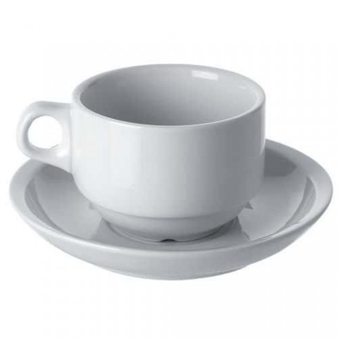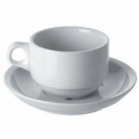 Porcelánové šálky a podšálky. Objem 180 ml. Lze stohovat.Šálek a podšálek na čaj Matfer, 180 ml, 12 ks