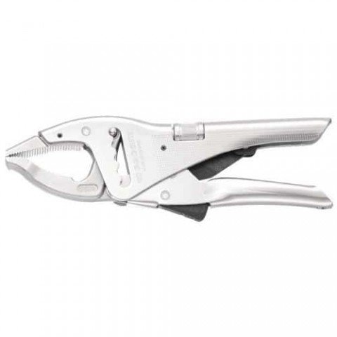 Kleště s kovanými a zesílenými čelistmi. Výkonné upínání a dlouhá životnost. Knoflíková dírka s 5 polohami, velká možnost nastavení. Velmi rychlé nastavení všech typů dílů, a to i při malém průměru. Stačí je stisknout a okamžitě se otevřou. Uvolnění spouští, nedochází k náhodnému otevření.Samosvorné kleště s dlouhými čelistmi Facom