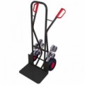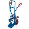 Sklopný schodišťový rudl z oceli. K přepravě břemen slouží dvě lopaty, z nichž jedna je sklopná a druhá pevná. Kola s hvězdicovým uspořádáním odolná proti opakovaným nárazům při manipulaci na schodech. Robustní ocelový rám určený pro každodenní použití.Sklopný schodišťový rudl Manutan Expert RU57 s plnými koly, do 250 kg