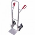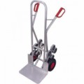Hliníkový schodišťový rudl s pěti hvězdičkovými ráfky. Plastová madla s bezpečnostní ochranou zamezující poranění rukou. Rozměr lopaty 300 x 285 mm. Lehká konstrukce zajišťuje snadnou manévrovatelnost. Kola vyrobeny z šedé termoplastické pryže, plastový ráfek. Pneumatiky na ocelovém ráfku nebo celopryžový kola na speciálním plastovém ráfku s přesnými kuličkovými ložisky a plastovým krytem kola.Hliníkový schodišťový rudl, do 200 kg, 61 x 70,5 x 131 cm