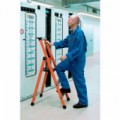 Skládací plastové schůdky s jednostranným vstupem, vhodné pro práci na elektrických zařízeních nebo v průmyslu. Madlo je opatřeno praktickou odkládací miskou na nářadí. Stupně jsou z lehkého kovu s protiskluzovým vroubkováním. Odolné vůči agresivním látkám. Vzdálenost mezi jednotlivými stupni je 23 cm. Opatřené plastovými ochrannými patkami.Plastové schůdky Zarges, 3 stupně